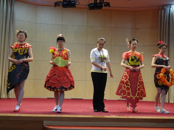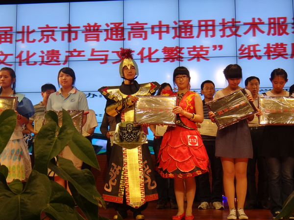 2012年5月5日,首届北京市普通高中通用技术纸模服装设计展示活动在北京师范大学附属中学举行,来自北京全市40所中学的代表展示了291套纸制服装。我校王雅炯、强建平、杨柏老师和杨鹏飞、张筱、晏晨之、贾岚、吴佳睿、顾子悦、芦悦、高玥瑶、刘原同学带着名为“纹饰装点太平”的作品参加了本次展示活动。